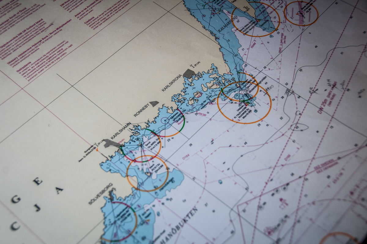 Patrząc na mapę zobaczyłem sporo małych wysepek oraz płytkich miejsc. Wchodząc do portu będzie trzeba uważać na mielizny oraz ruch innych statków. Sporo kardynałek oraz pław pomaga w bezpiecznym wejściu do portu. Do portu podchodziliśmy na silniku, gdy nagle naszym oczom pojawiła się łódź podwodna.
