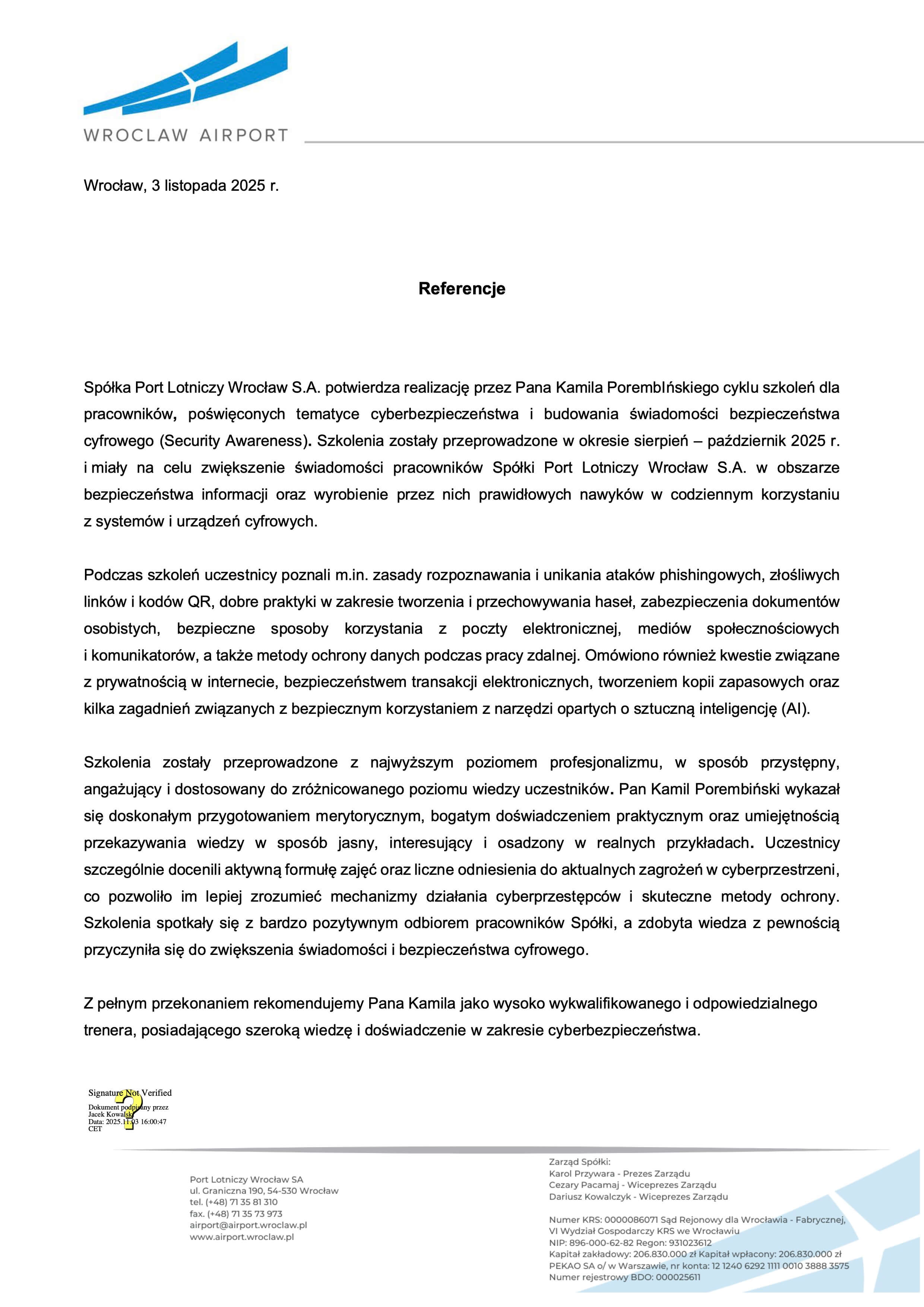 I specialise in training and IT system implementation, offering comprehensive support in adapting technology to the needs of your company. I have many years of experience, which allows me to deliver proven and effective solutions. See what my clients say about working with me!