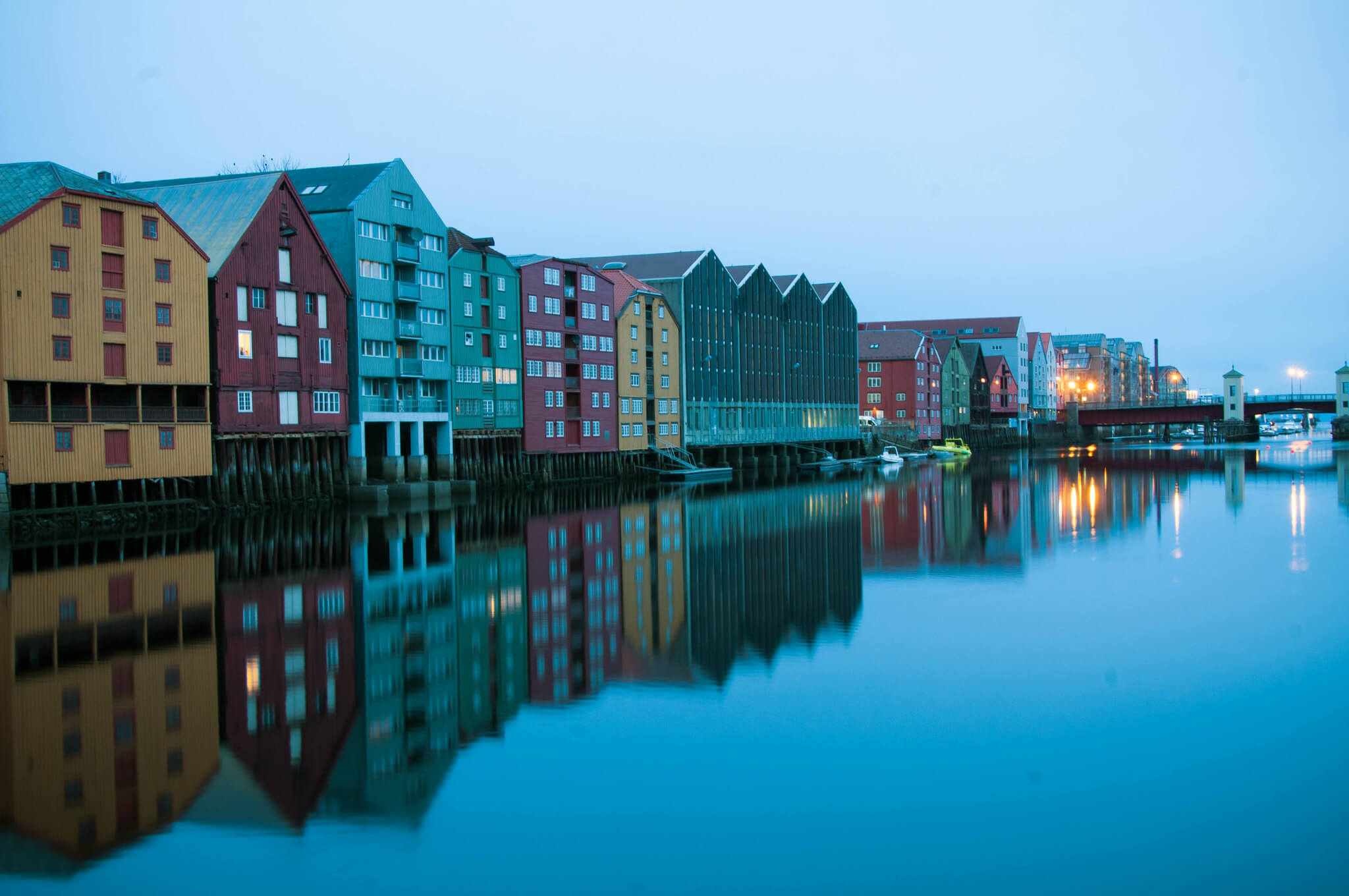 Trondheim to pi臋kne, uniwersyteckie miasto, kt贸re znajduje si臋 艣rodkowej cz臋艣ci Norwegii. Znamy je g艂贸wnie jako o艣rodek sport贸w zimowych, gdzie Kamil Stoch wygra艂 konkurs w Trondheim w skokach narciarskich. Latem jest to cudowne miejsce do d艂ugich spacer贸w wzd艂u偶 fiord贸w.